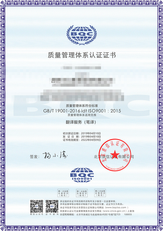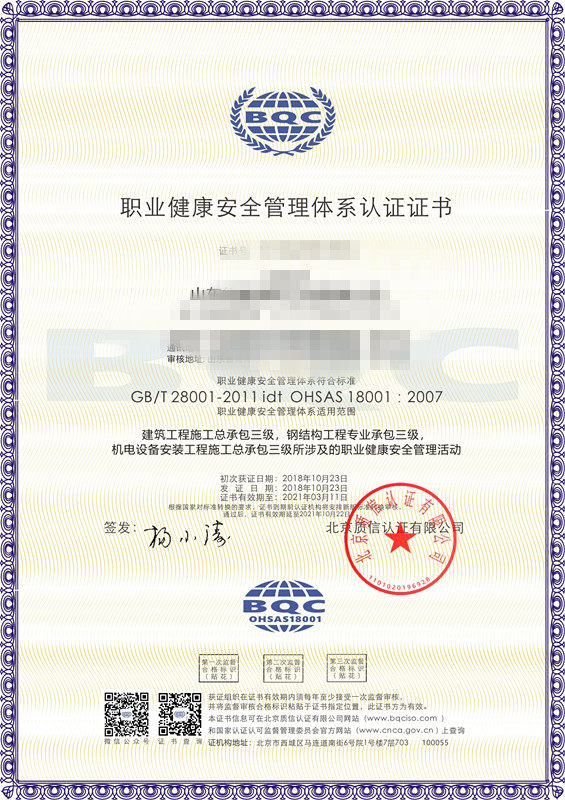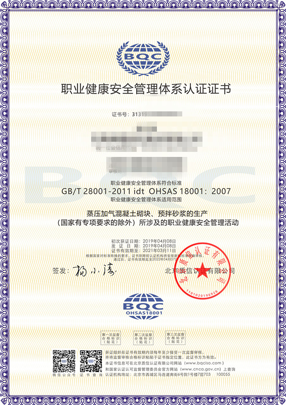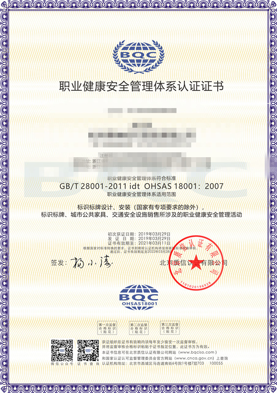 北京質(zhì)信認證是國家認證認可監(jiān)督管理委員會批準(批準號:CNCA-R-2017-313)的獨立公正的三方審核認證機構,可從事ISO9001質(zhì)量管理體系認證、ISO14001環(huán)境管理體系認證、ISO45001職業(yè)健康安全管理體系認證,頒發(fā)相應的認證證書。質(zhì)信認證由我國認證界資深從業(yè)人士發(fā)起設立,目標是成為一家國際領先民族認證品牌,在扁平化的全球競爭中,不斷發(fā)展壯大自己,有力地服務于各類組織。