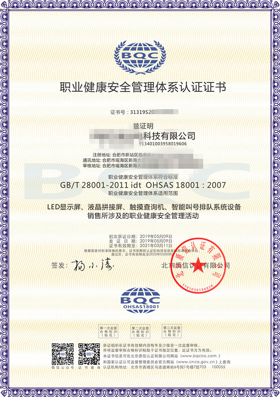 北京質(zhì)信認證有限公司安徽分公司